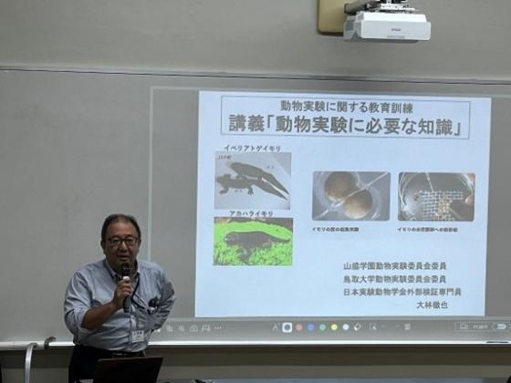 10月6日(月)に本校の動物実験委員会の委員でもある鳥取大学研究推進機構先進医療研究センター動物実験施設・副センター長 大林徹也准教授を招いて動物実験委員会講習会が開催されました。