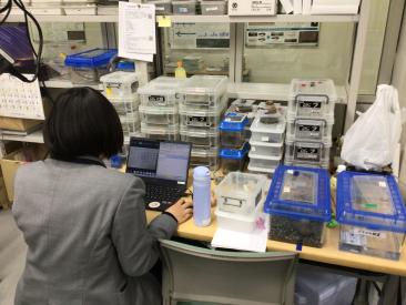 毎日、オオイタサンショウウオの餌やりや水替え、体長測定を行い、集めたデータを統計的に分析して成長特性の解明を目指しています。