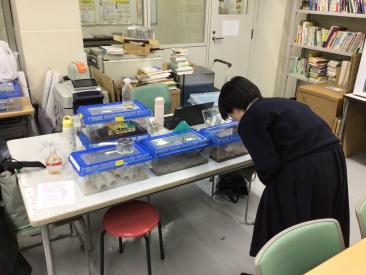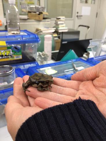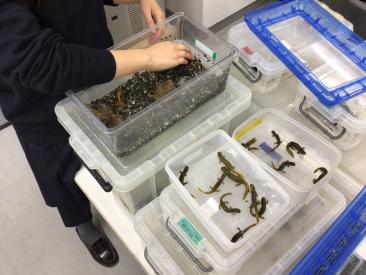 また、研究室のイベリアトゲイモリ、野外採取したアズマヒキガエルやモリアオガエル、プラナリア、ヒルなども飼育しています。もとから生物が大好きなメンバーなので、毎日の大変な飼育をとても楽しそうに取り組んでいます。