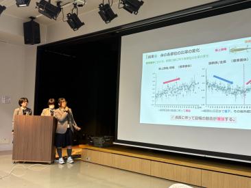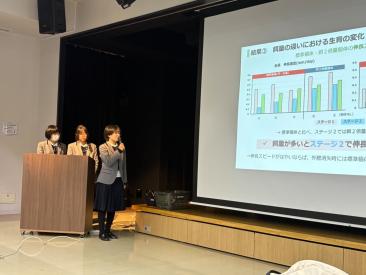 有尾研の高校1年生の生徒3名は、大分での生息地調査の経験を踏まえて、オオイタサンショウウオの保全のために重要な、幼生期の成長特性をまとめた研究成果の発表を行いました。日々のデータの積み重ねや発表資料の工夫が評価され、多くの方々に興味を持っていただき、たくさんのお声掛けをいただきました。